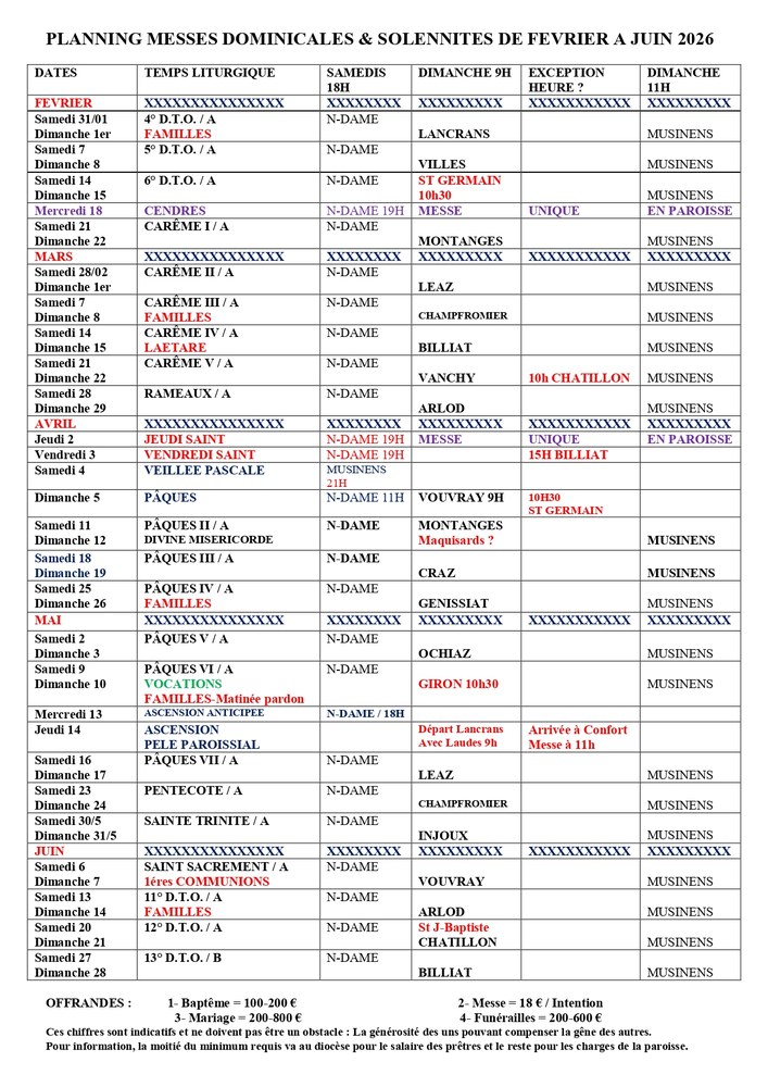 Calendrier des messes