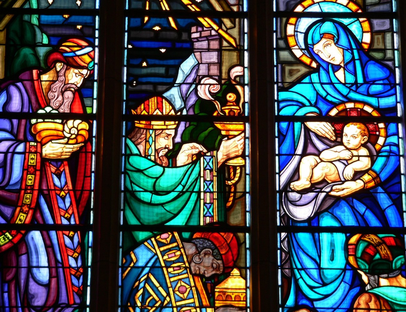 Mais ce temps de Noël comporte aussi des fêtes relatant d'autres évènements de l'enfance du Messie : juste après Noël, la fête de la Sainte Famille nous fait fuir en Egypte ou nous conduit au Temple du Jérusalem; la fête de Marie, Mère de Dieu, le 1er janvier, et le Saint Nom de Jésus, le 3, nous rappellent la circoncision du Christ, et un peu plus tard, le 2 février, la chandeleur nous remmènera au Temple avec Syméon et Anne. C'est ainsi que nous restons dans l'ambiance de Noël longtemps après la fête.