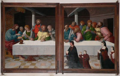 Jésus prend son dernier repas avec ses amis. Il leur lave les pieds, pour leur apprendre à servir leurs frères et soeurs. Il leur donne le pain et le vin, qui deviennent son Corps et son Sang : c’est la première Messe.