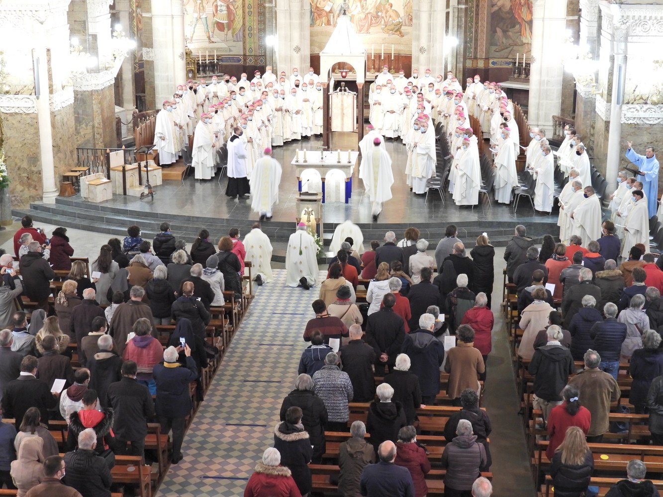 Déjà, mercredi et jeudi matin, lors de nos rencontres avec des personnes en précarité sous le thème « Clameur des pauvres, clameur de la terre », nous avons expérimenté l’Église que nous aimons, l’Église qui nous fait grandir et nous donne d’espérer, malgré nos pauvretés et nos fragilités, l’Église qui nous rend heureux et fiers. Nous avons été émus par la fraternité concrète entre nous, nos invités diocésains, les personnes en précarité et les membres des associations qui les accompagnaient. Je remercie ici Laurent van Ditzhuizen et Marion Cremona, de l’Université du Nous, qui nous ont aidés à nous connecter les uns aux autres en vérité. Ils nous ont encouragés à nous laisser entraîner par la fierté et la joie de nos hôtes, par leurs attentes aussi, et ce fut bon d’être tous ensemble. Je remercie aussi Pascal Balmand et toutes les associations qui ont été partenaires de ce jour et demi. Nous avons été émerveillés par le travail de préparation qui avait été vécu dans tant de groupes pour permettre à deux représentantes ou représentants de venir nous rejoindre en apportant la parole du groupe entier. Nous avons entendu la fécondité de la parole de Dieu écoutée ensemble avec des personnes en précarité dès lors que l’on veut bien en prendre le temps et les moyens. Nous avons été impressionnés par la créativité des associations que la méditation de la Parole de Dieu a suscitées au fil des ans. J’ai pris conscience pour ma part que je pouvais progresser dans ma disponibilité aux personnes en précarité et dans mon attention à la sagesse et pas seulement à la clameur dont elles sont porteuses. Tous ensemble, avec ces personnes, avec nos invités diocésains, avec les membres des associations, nous avons entendu l’expérience des êtres humains qui ne peuvent vivre que de l’essentiel et nous y avons reconnu la vérité du Christ Jésus, la grande pauvreté de Dieu qui est riche en miséricorde, qui n’est riche qu’en miséricorde.