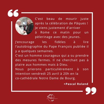 Décès du pape François - Communiqué de Mgr Roland - Invitation à la prière