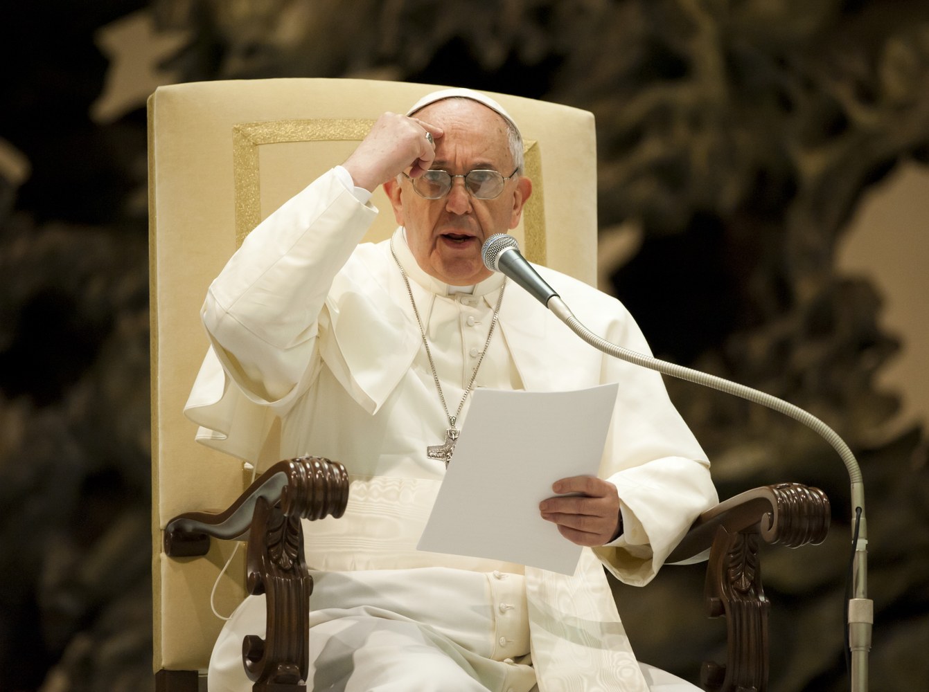 La parabole met cruellement en évidence les contradictions où se trouve le riche (cf. v. 19). Ce personnage, contrairement au pauvre Lazare, ne possède pas de nom, il est seulement qualifié de “riche”. Son opulence se manifeste dans son habillement qui est exagérément luxueux. La pourpre en effet était très précieuse, plus que l’argent ou l’or, c’est pourquoi elle était réservée aux divinités (cf. Jr 10,9) et aux rois (cf. Jg 8,26). La toile de lin fin contribuait à donner à l’allure un caractère quasi sacré. Bref la richesse de cet homme est excessive d’autant plus qu’elle est exhibée tous les jours, de façon habituelle: « Il faisait chaque jour brillante chère » (v.19). On aperçoit en lui, de manière dramatique, la corruption du péché qui se manifeste en trois moments successifs: l’amour de l’argent, la vanité et l’orgueil (cf. Homélie du 20 septembre 2013).