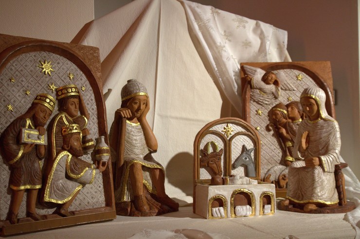 9. Lorsque s’approche la fête de l'Épiphanie, nous ajoutons dans la crèche les trois santons des Rois Mages. Observant l'étoile, ces sages et riches seigneurs de l'Orient, s'étaient mis en route vers Bethléem pour connaître Jésus et lui offrir comme présent de l'or, de l'encens et de la myrrhe. Ces dons ont aussi une signification allégorique : l'or veut honorer la royauté de Jésus ; l'encens sa divinité ; la myrrhe sa sainte humanité qui connaîtra la mort et la sépulture.