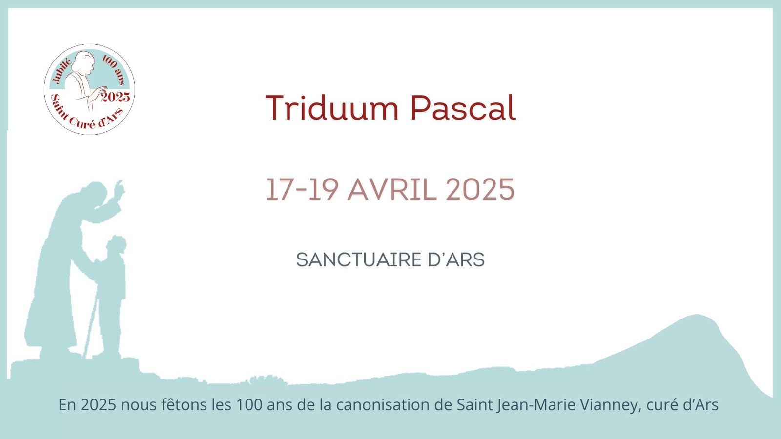 [Triduum Pascal] - Jeudi 17 au samedi 19 avril 2025 au sanctuaire d'Ars [Triduum Pascal] - 17 au 19 avril 2025 au sanctuaire d'Ars Quand du 17/04/2025 au 19/04/2025 Où Sanctuaire d'Ars Contact Accueil Sanctuaire d'Ars Téléphone 04 74 08 17 17 Ajouter l'événement au calendrier vCal iCal Avec Mgr Pascal ROLAND, évêque de Belley-Ars Suivez le diocèse Belley-Ars : Suivez le sanctuaire d'Ars : Plus d'informations sur cet événement…