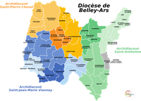 Un diocèse est une portion du peuple chrétien confié à un évêque. Le diocèse de Belley-Ars est le peuple chrétien qui réside dans le département de l’Ain. Il est placé sous la responsabilité pastorale de l’évêque de Belley-Ars, Mgr Pascal Roland, nommé à cette fonction par le Pape Benoît XVI le 15 juin 2012.
