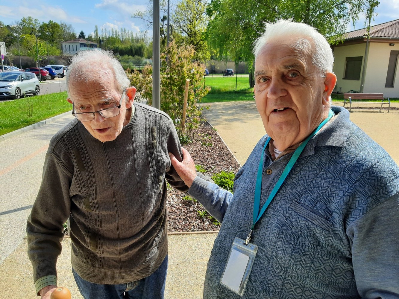Père Jean Bernard (à gauche) entrée à l’Ehpad de Seillons-Repos - Avril 2023
