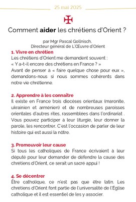 Journée des chrétiens d'orient 25 mai 2025