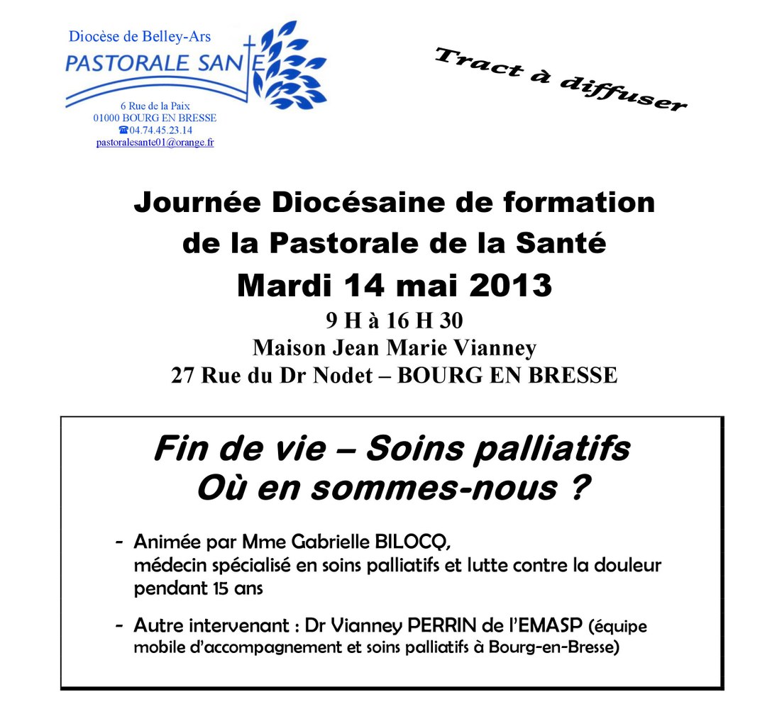 Autre intervenant : Dr Vianney PERRIN de l’EMASP (équipe mobile d’accompagnement et soins palliatifs à Bourg-en-Bresse).