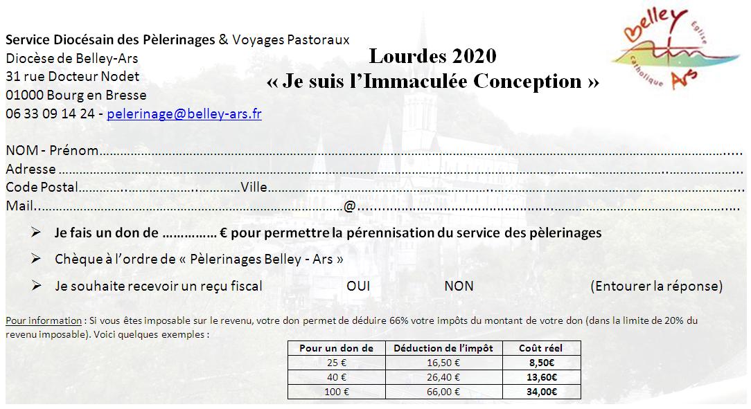 Soutenez le service diocésain des Pèlerinages de Belley-Ars, les sanctuaires de Lourdes, un pèlerin aidé, un prêtre, un religieux ...