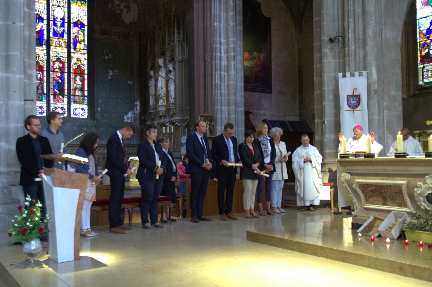 A la fin de la célébration, Olivier de Coat, Directeur diocésain de l'Enseignement catholique, a appelé les chefs d'établissement et les animateurs en pastorale qui ont commencé une nouvelle mission en ce mois de septembre, pour leur remettre leur lettre de mission.