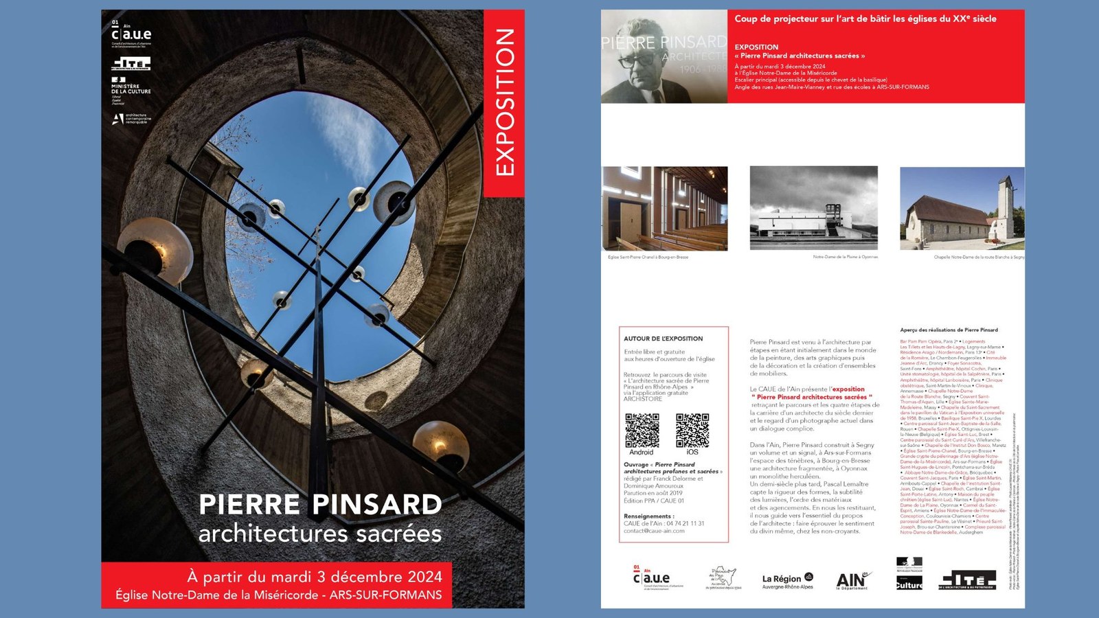 C'est donc dans l'enceinte d'une de ses oeuvres majeures, que le CAUE a installé cette exposition, construite pour le pèlerinage autour du Saint Curé Jean-Marie Vianney, dont l’année 2025 verra le centenaire de sa canonisation.