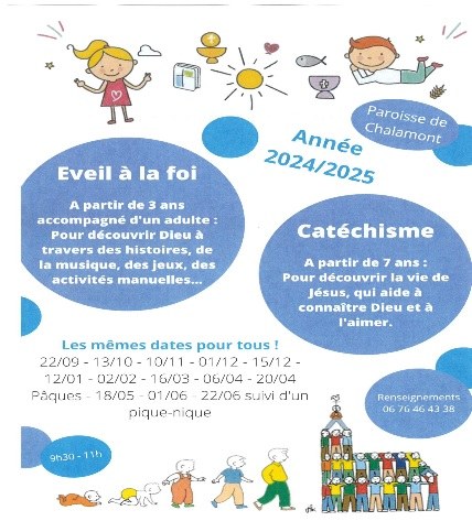 Horaires du caté et de l'Eveil à la Foi sur la paroisse de Chalamont : 2023-2024