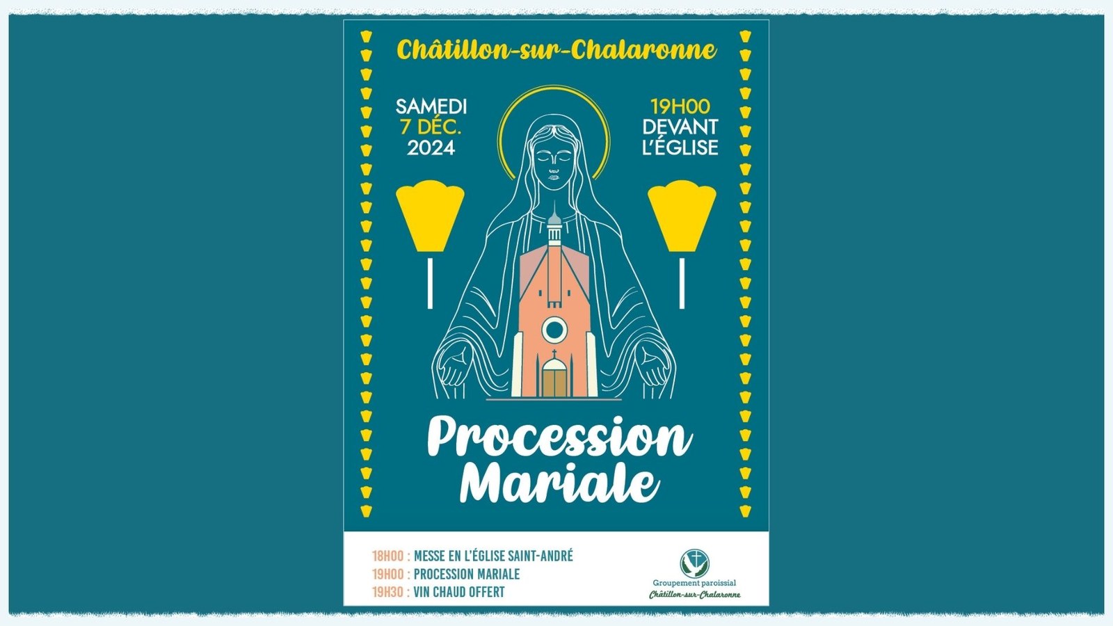 19h00, départ de la procession mariale avec lumignons depuis le parvis de l'église