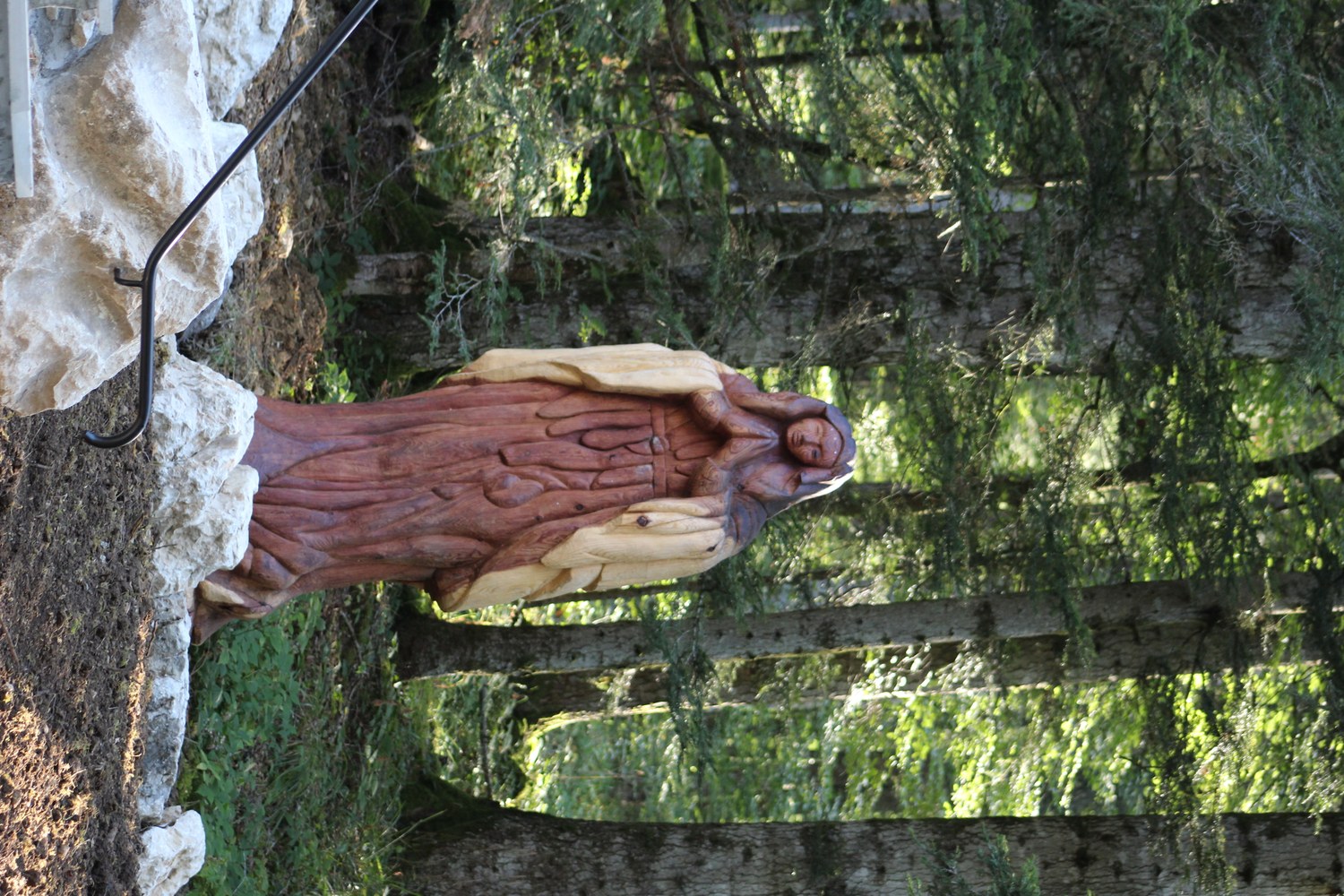 L’association « Les amis de Mazières » avait le projet de réhabiliter la plateforme à côté de la chapelle et d’y dresser la statue de la Vierge sculptée dans un tronc des séquoias abattus sur l’ancien site de Bellecombe. Cependant de nombreux contretemps se sont produits. L’association « Arcane » n’a pas pu respecter ses engagements et Patrick Pesenti qui avait lancé les travaux, a trouvé des amis bénévoles qui ont travaillé avec acharnement à ses côtés pour mener à bien cette réalisation juste pour le 8 septembre.