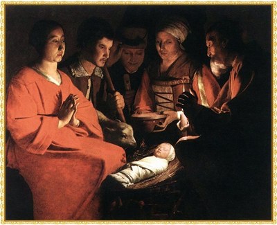 Le « Soleil de justice » (prophète Malachie 4, 2) apparaît dans le monde : ni ornements, ni sceptre, ni couronne ne le couvrent. C’est un petit enfant, Emmanuel — « Dieu-avec-nous » (prophète Isaïe 7, 14), le Christ, Messie attendu depuis des siècles par le peuple élu.