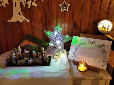 Je n'ai pas encore tout déballé, mais la crêche est en place. l'équipe de la Valserine y est bien présente par la carte que vous avez signée, a&insi que le nom des personnes qui nous sont proches. bonne marche en Avent.