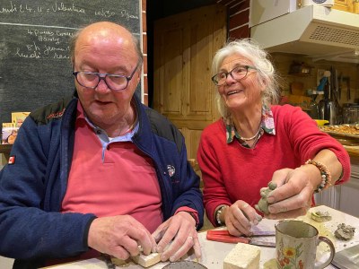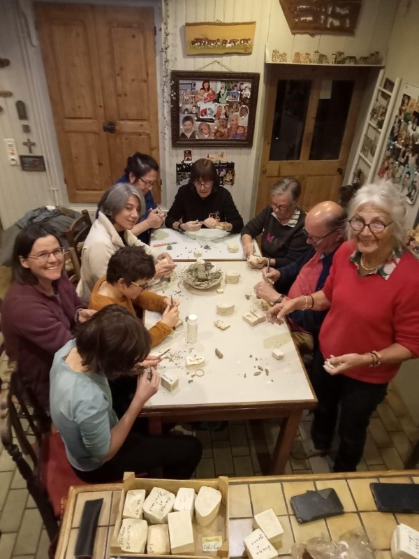 A la demande de plusieurs paroissiens et personnes sympathisantes et en fonction des disponibilités, un atelier de santons s’est mis en place chez Marie-Suzanne et Jean-Pierre