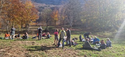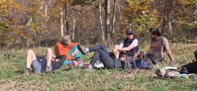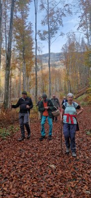 En ce beau dimanche d’automne du 27 octobre, après la messe à Chezery, nous avons rejoint le hameau de La Rivière pour marcher sur le sentier des Légendes. Quelques passages de traverse au milieu des bois et casse-croûte avec vue sur les hauteurs et la grotte de la Marie du Jura.