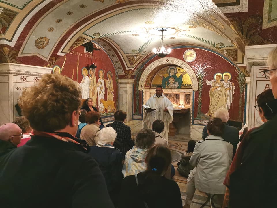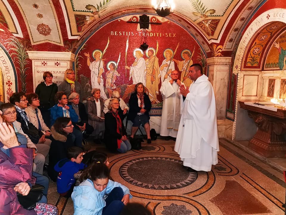 Puis sur le tombeau de St Pothin sur lequel nous avons eu la grâce de célébrer la Sainte Messe à l’Antiquaille. En fin de matinée, nous nous sommes rendus à la maison de Lorette où des guides nous ont fait découvrir Pauline Jaricot.